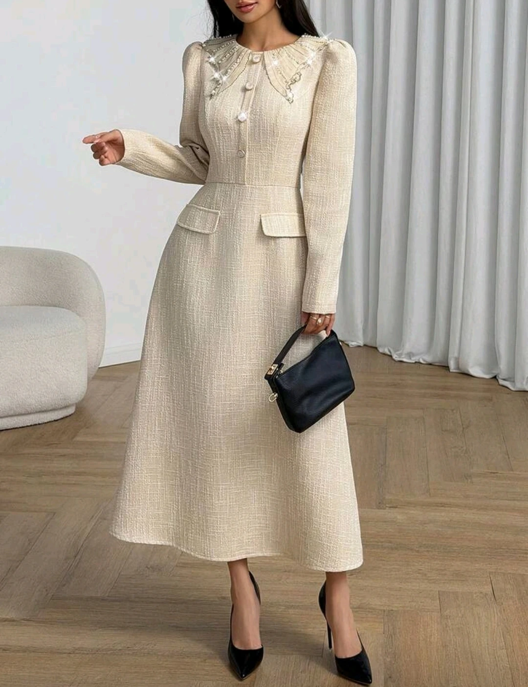 حذاء كعب عالي بنعل كاحل لموسم الخريف/الشتاء 2025، بتصميم رفيع وأنيق بلون بيج، كعب عالي مناسب للنساء، يتناسب مع فستان أبيض/أسود، مناسب للمناسبات الأنيقة والزفاف