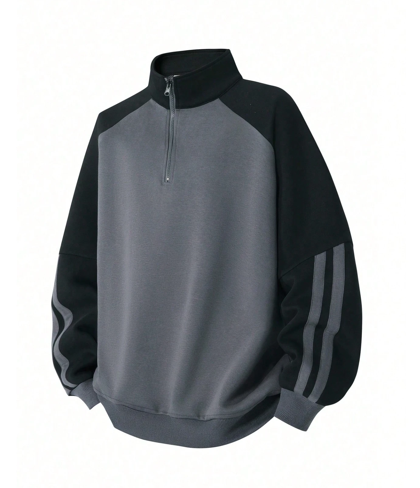 بلوزة رجالية كاجوال بأكمام راجلان مخططة، سحاب ربع الطول، بلوزة عصرية نصف السحاب، للربيع والخريف