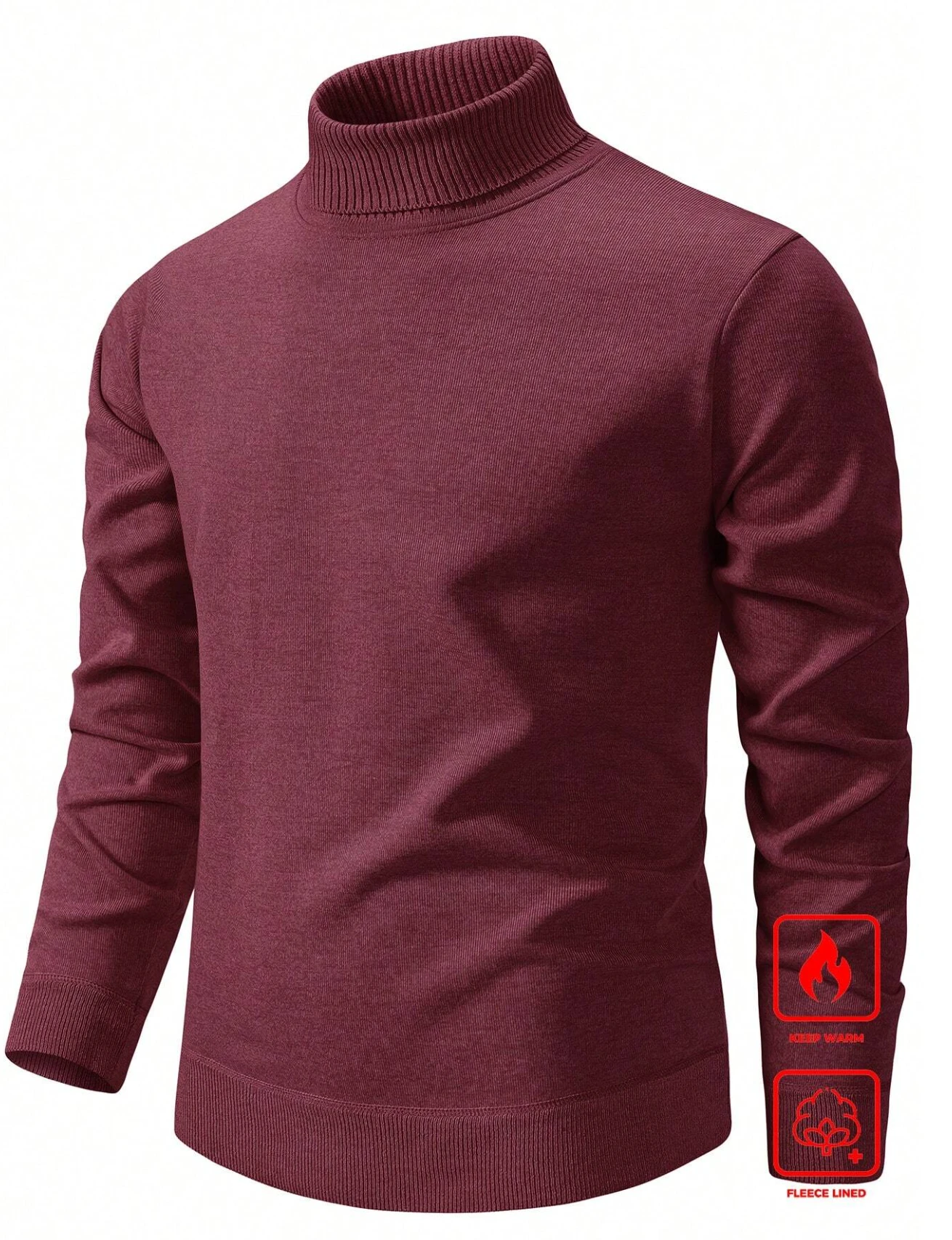 Manfinity Mode كنزة صوفية صوفية بياقة عالية وأكمام طويلة ذات لون أحادي، بطانة حرارية، للارتداء اليومي الكاجوال، مناسبة للخريف والشتاء