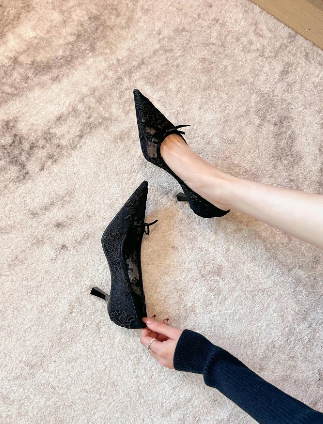 Xin Jing Shoes أحذية كعب متوسط ذات رؤوس مدببة للنساء في فصل الخريف/الشتاء، أحذية أنيقة وعملية للتنقل، أحذية عصرية وشاملة للحفلات