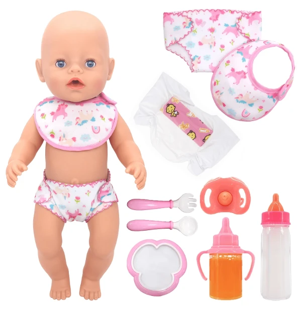 مجموعة إكسسوارات دمية الرضيع، لعبة دمية المولود الجديد، تشمل طقم أدوات المائدة للدمية، ربطة عنق، حلمة، حفاضات وزجاجة تغذية. مناسبة للأطفال من عمر 3 سنوات فما فوق لألعاب الحفلات والترابط بين الوالدين والطفل، هدية احتفالية مثالية (الدمية غير مشمولة؛ ألوان وأنماط الإكسسوارات عشوائية).