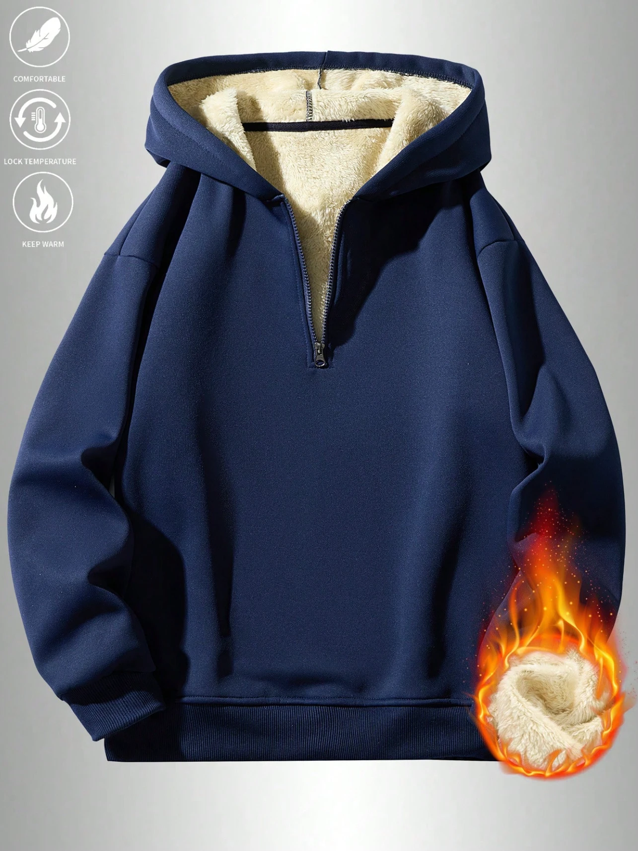 بلوزة رياضية كاجوال مزودة بقلنسوة وسحاب نصفي من الفليس للرجال
