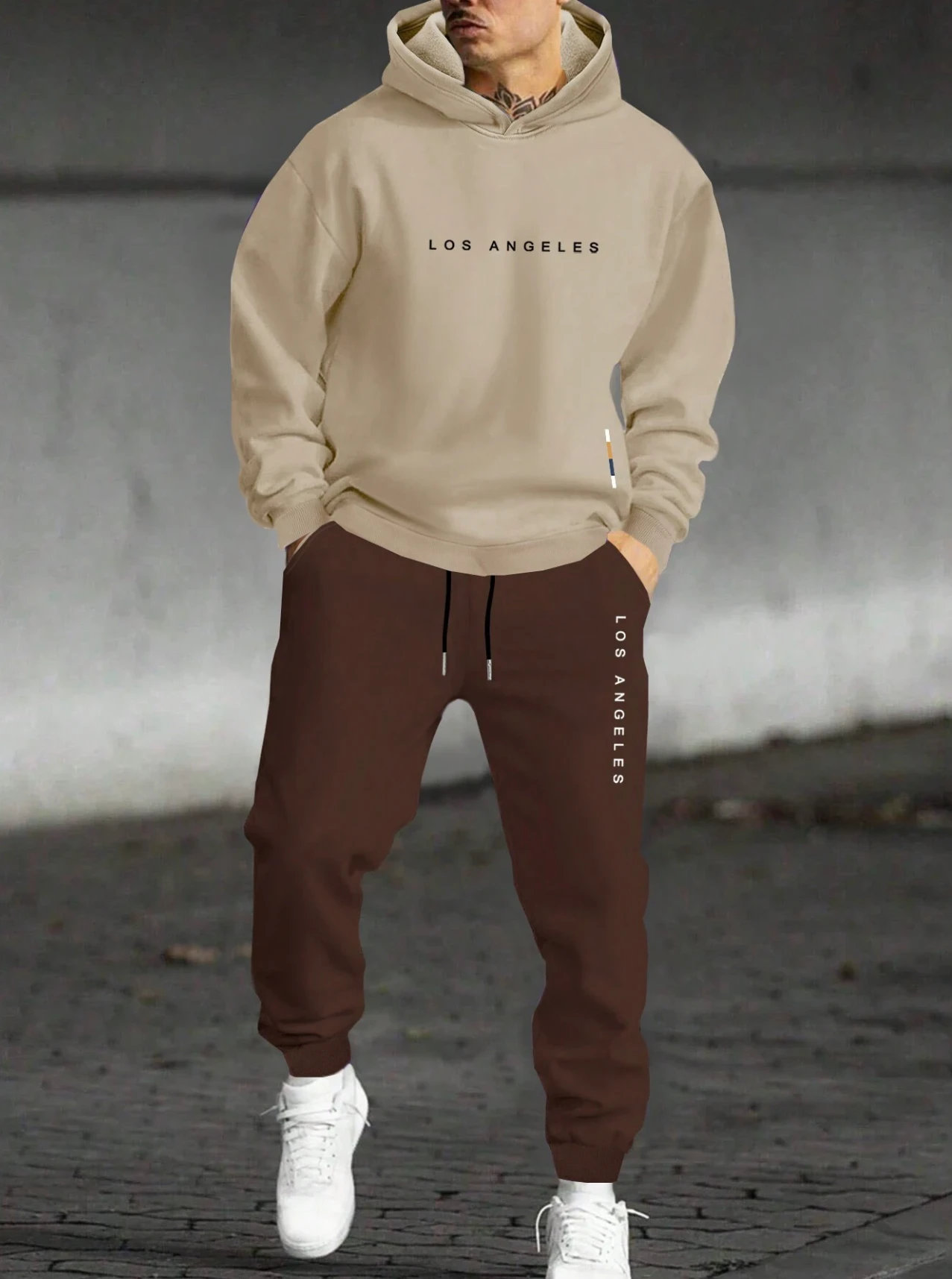 Manfinity Homme بدلة رياضية رجالية مكونة من هوديي وبنطلون مطبوع عليهما حرف، ملائمة بشكل فضفاض، ملابس خريفية