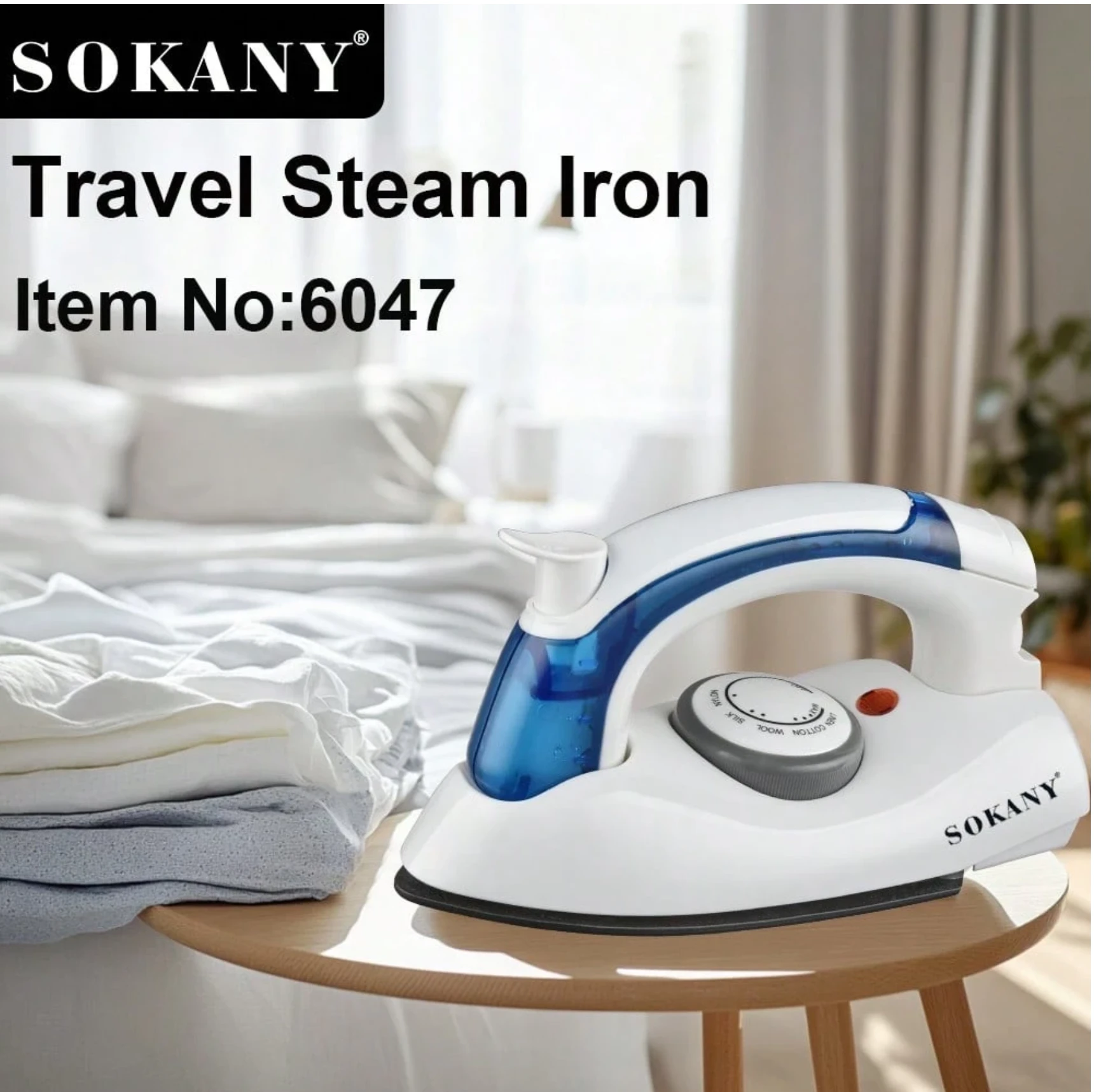 SOKANY مكواة بخار سوكاني 6047 للسفر، إزالة التجاعيد من الملابس، قوة 700 واط عالية، سخان سريع، تحكم في درجات الحرارة المتعددة، تبديل حر. شاشة عرض LED للتعديل السهل. لوح قاعدة سيراميكي، سهل الكي للياقات والأزرار والمناطق الصغيرة الأخرى. مناسبة للسفر والأعمال والاستخدام المنزلي
