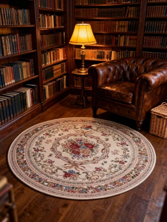 سجادة دائرية طراز زهري قديم - سجادة زخرفية لغرفة النوم والمعيشة