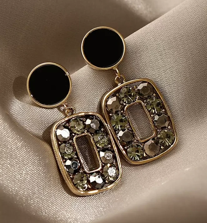 زوج واحد من الحلقان الهندسية المصنوعة من الراتنج والمزينة بالراينستون اللامع