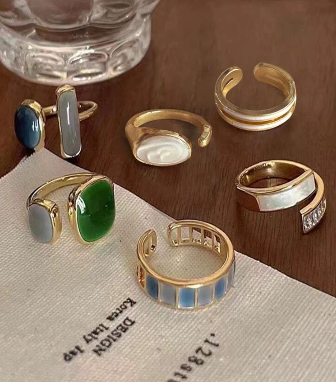 مجموعة من 6 خواتم للنساء بتصميم بسيط وأنيق، مزينة بحجر الزمرد لإطلالة راقية وفاخرة.