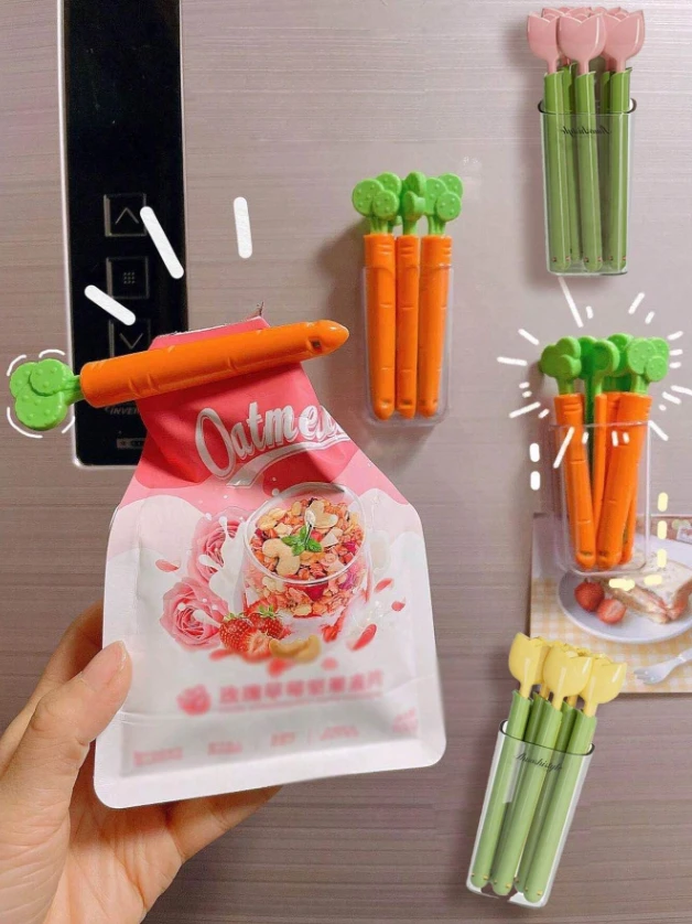 مجموعة 5 مشابك إغلاق أكياس بشكل جزر وأرانب مع صندوق تخزين مغناطيسي