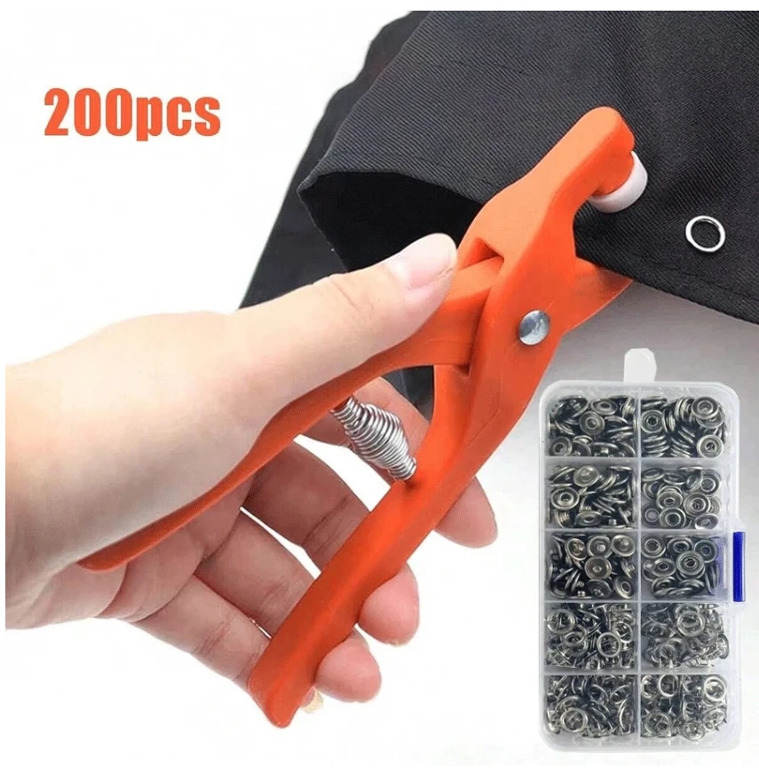 طقم 200 زر ضغط معدني بخمس مخالب مع كماشة وصندوق تخزين