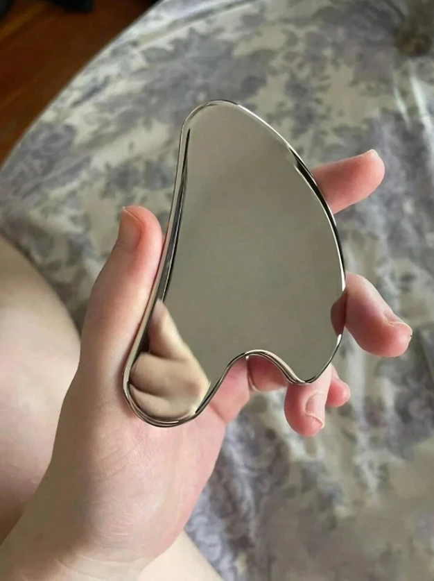 لوح جوا شا للوجه بشكل قلب من الفولاذ المقاوم للصدأ – تدليك الوجه وتقليل التورم