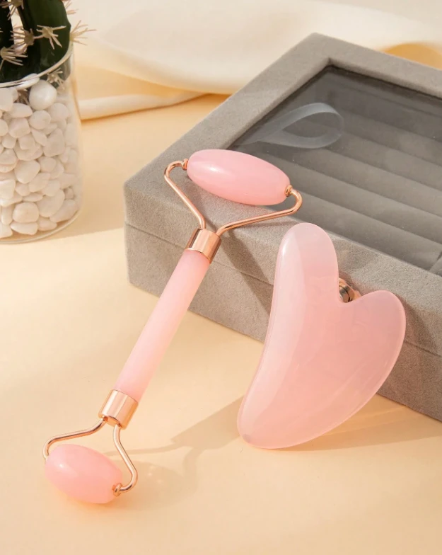 مجموعة أدوات تدليك الوجه جوا شا – أسطوانة تدليك ولوح قلب لتقليل التورم وتجديد إشراقة البشرة