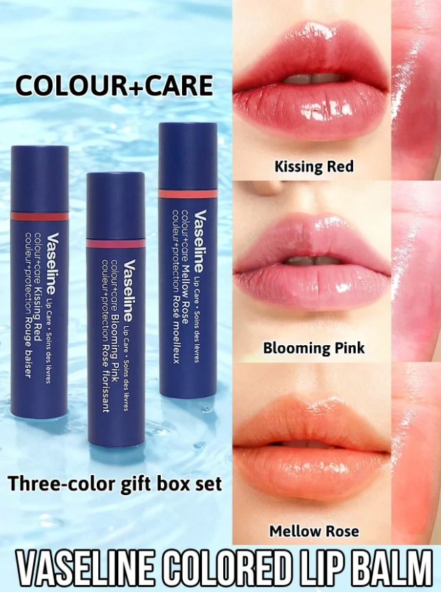 Vaseline 3 قطع، طقم هدايا بلسم شفاه بألوان الفازلين، يعالج الجفاف، ترطيب لمدة 24 ساعة، يقلل من خطوط الشفاه، يحتوي على ألوان أحمر وزهري وأحمر وردي، مرطب، مغذي، مرطب، ناعم، خفيف وغير دهني، يعزز لون الشفاه، لمسة طبيعية، يضيف بريقًا، مناسب للشفاه الجافة، للباحثين عن مكياج طبيعي، لاستخدام يومي.