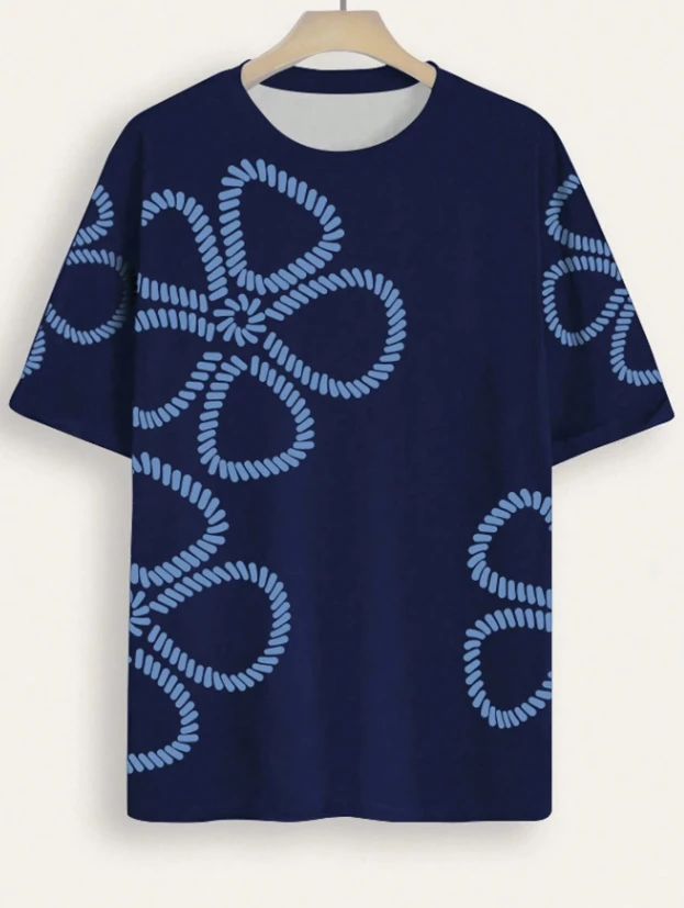 تيشيرت نسائي ذو رقبة مستديرة مطبوع بزهري، دفع بالخصر، موضة وشامل, صيفي