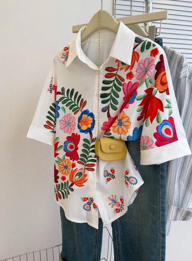 قميص نسائي كاجوال بأكمام خفيفة وتصميم مطبوع بزهور