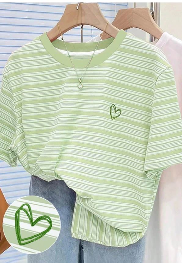 تي شيرت نسائي كاجوال قصير الأكمام بياقة دائرية كلاسيكية