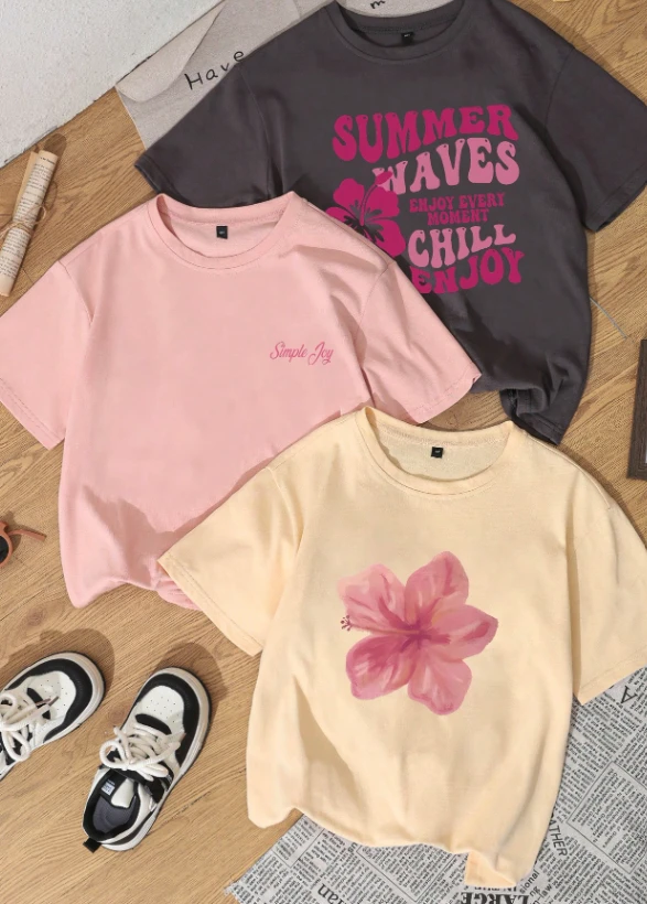 3 قطع/مجموعة تي شيرت نسائي أنيق برقبة دائرية وأكمام قصيرة