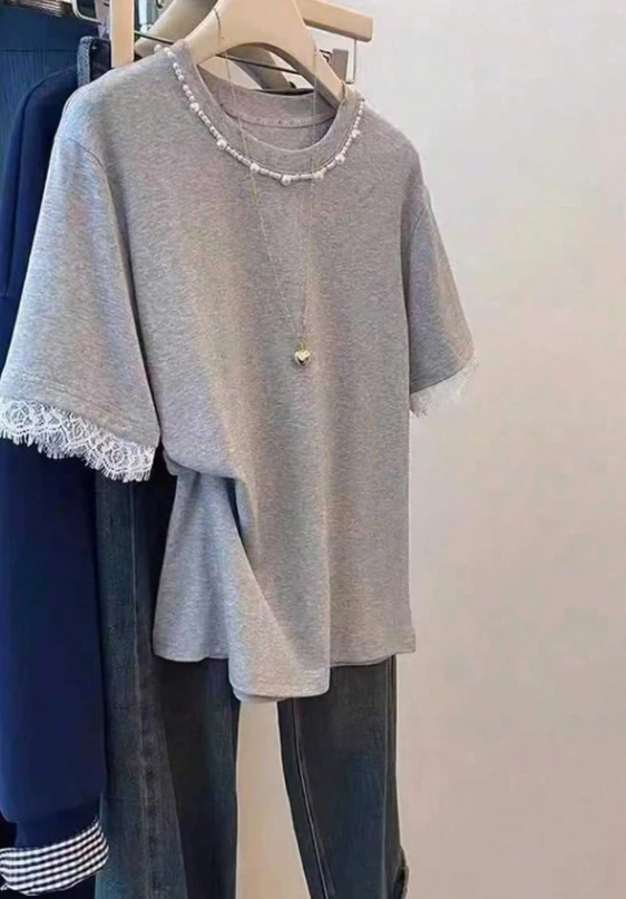 تي شيرت نسائي أنيق بطابع فرنسي راقٍ بأكمام قصيرة