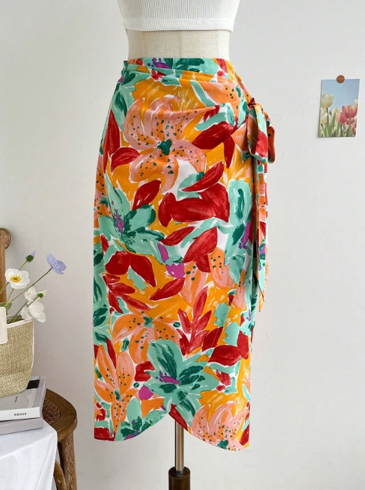تنورة مزخرفة بطبعة وجهة المنتجع السياحي للنساء