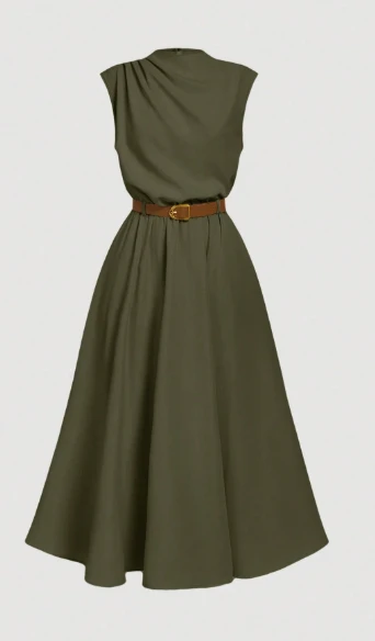 فستان أنيق بدون أكمام (مع حزام)، موسم العودة إلى المدرسة