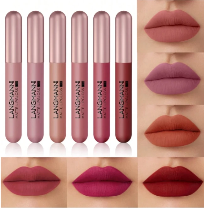 LANGMANNI 6 ألوان مخملي مادة احمر الشفاة سائل , ضد للماء متين ملمع شفاه طقم ملمع شفاه