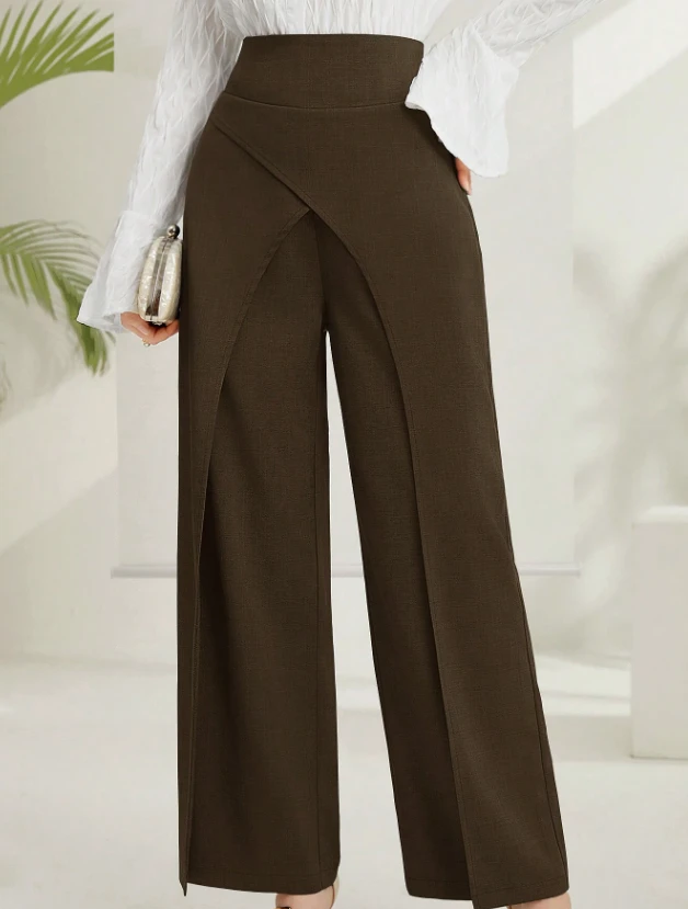 Elenzga بنطلون نسائي واسع الساق بطراز صيني أنيق