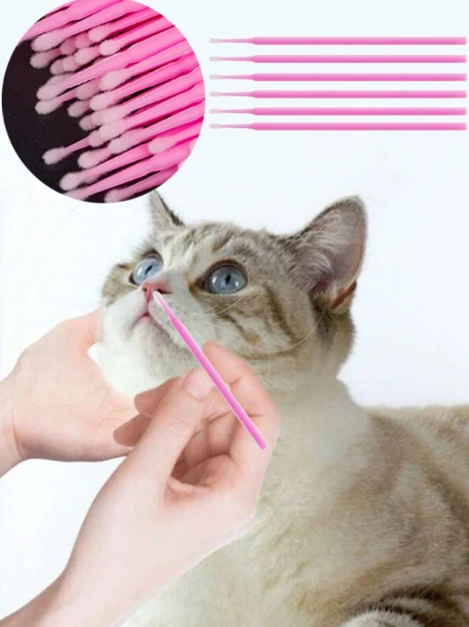 عصي تنظيف الحيوانات الأليفة القابلة للتصرف 100 قطعة - لتنظيف الأذن والعين والجسم