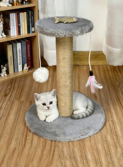 قطعة تمزيق عمودية للقطط - شجرة قطط صغيرة مع كرات بوم بوم وريش