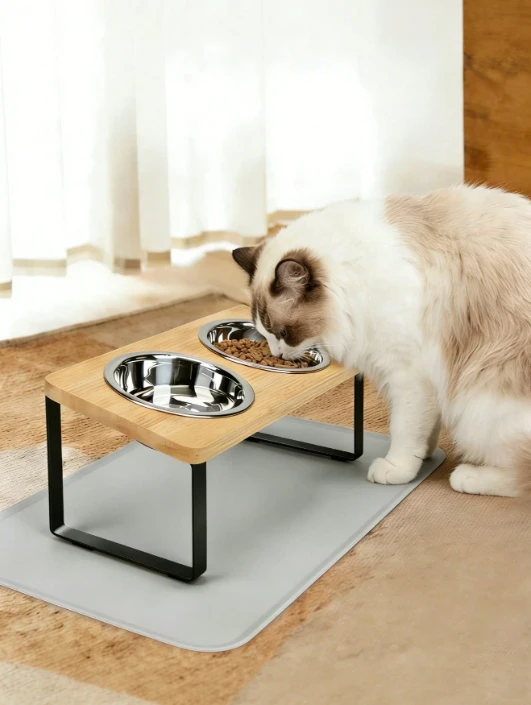 طقم وعاءين مرتفعين من الفولاذ المقاوم للصدأ للقطط/الكلاب مع حامل - وعاءان مائلان للطعام والماء