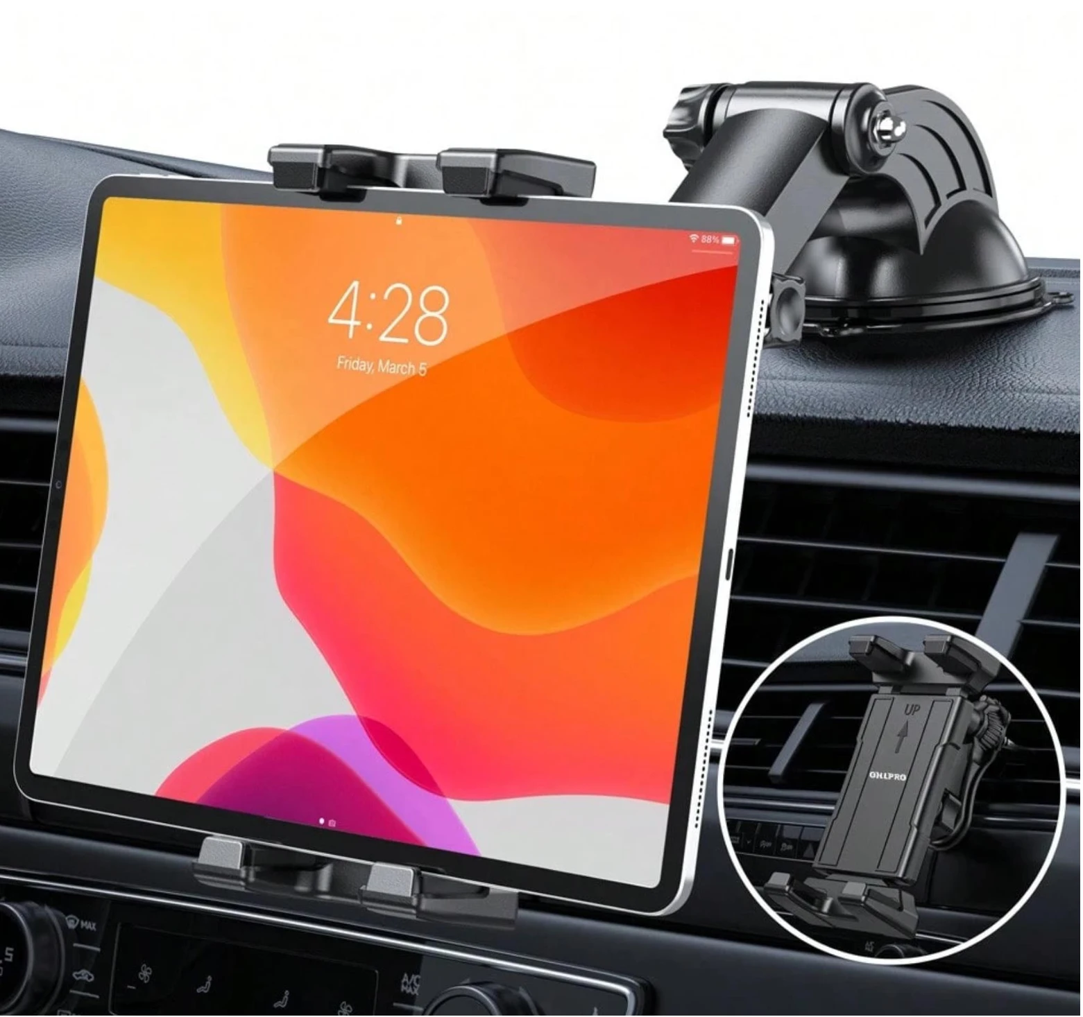 OHLPRO حامل لوحي للسيارة، حامل شفط لوحي للسيارة للشاحنة على زجاج الرياح مع ذراع مرنة، لجميع أجهزة آبل آيباد وأجهزة جالكسي تاب بأحجام من 5 إلى 13 بوصة، دوران 360 درجة