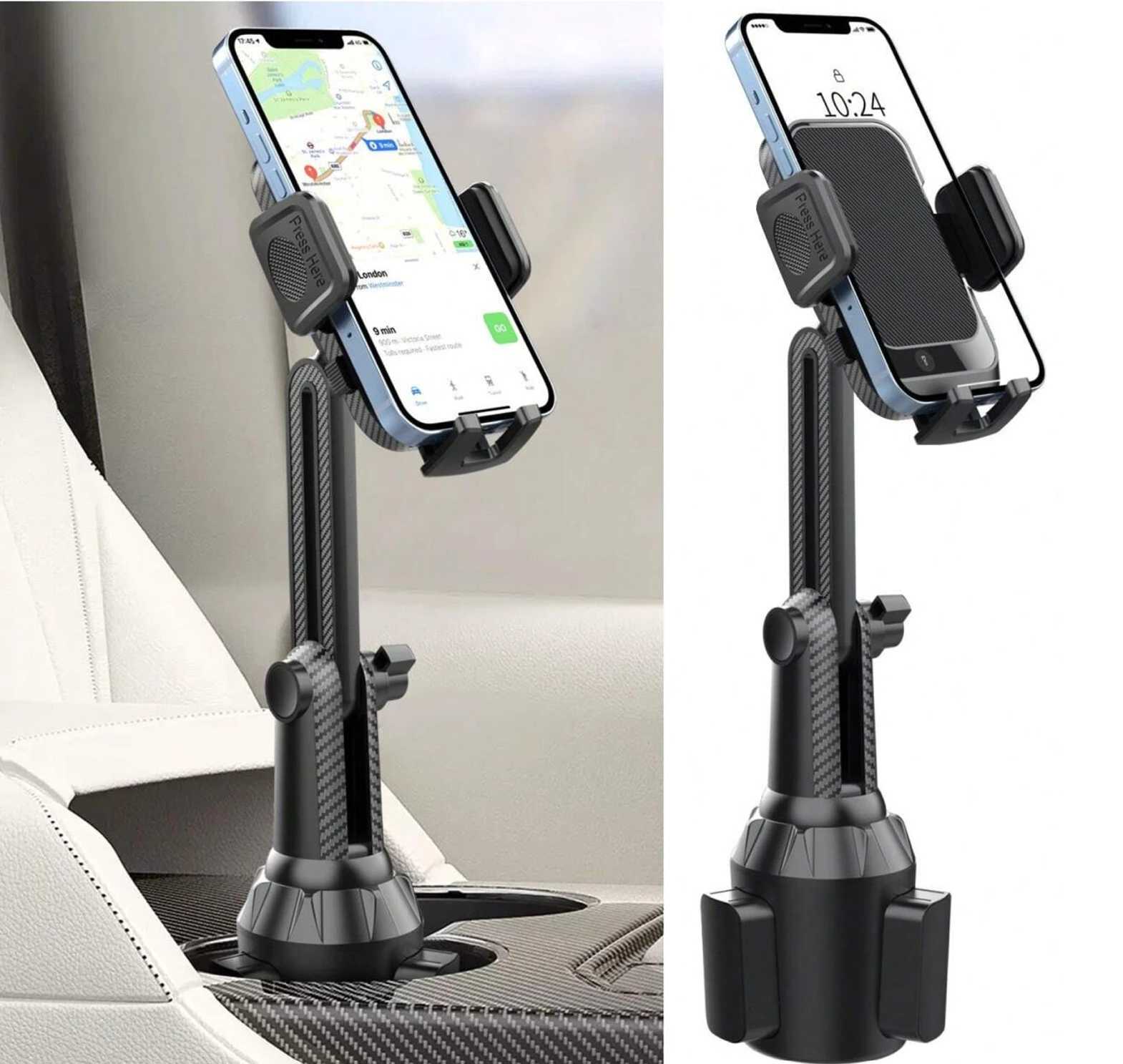 حامل هاتف سيارة قابل للتعديل مع حامل كوب 2 في 1، قاعدة قابلة للتعديل مع حامل هاتف، ذراع طويلة قابلة للدوران 360 درجة، متوافق مع جميع الهواتف الذكية
