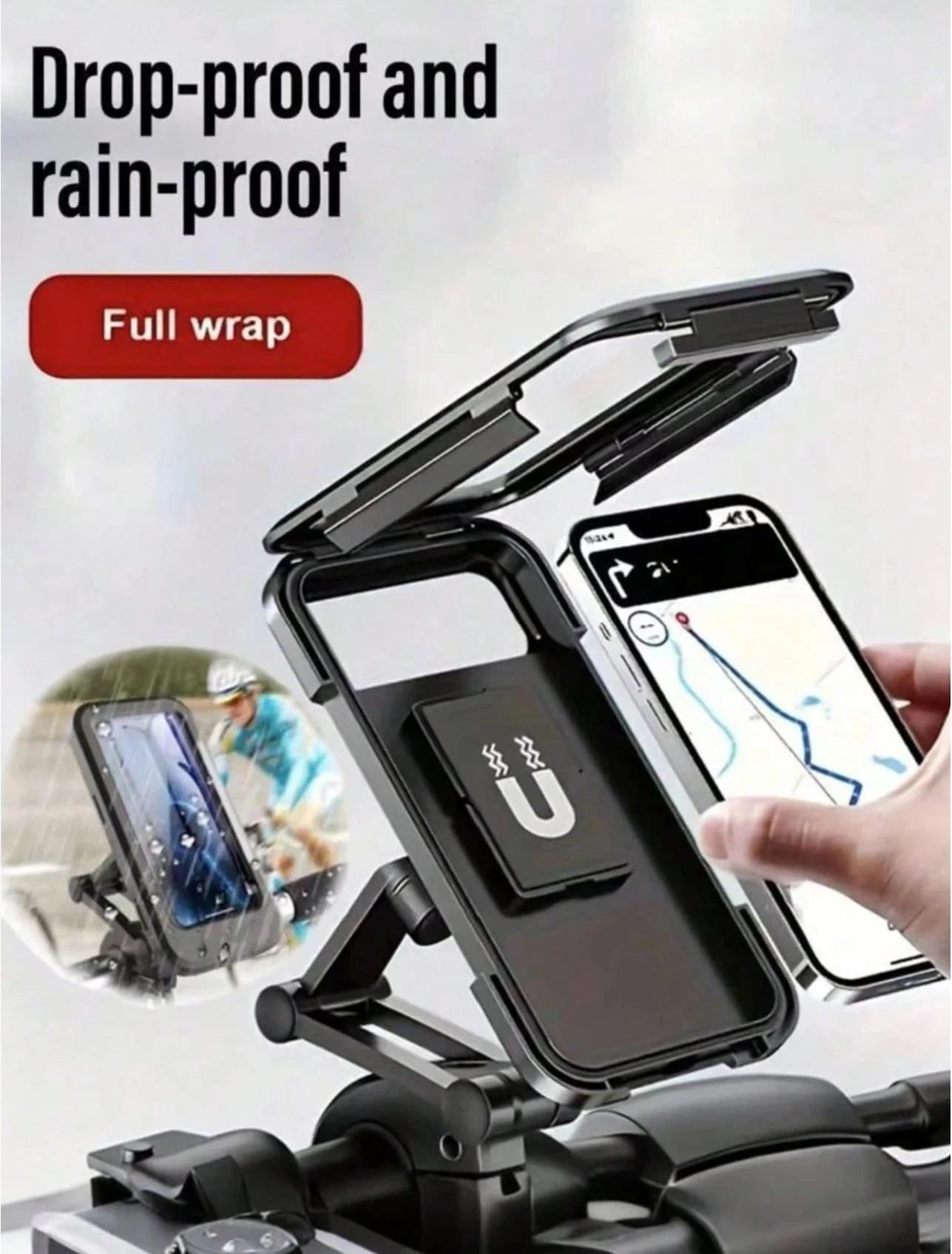 حامل هاتف محمول مقاوم للماء شامل، حامل هاتف محمول للمقود، حامل مغناطيسي مقاوم للماء، حامل للملاحة، مناسب للدراجات الهوائية/المركبات الكهربائية/الدراجات النارية متوافق مع و Android، هدية لعيد الميلاد والعائلة والأصدقاء لملحقات الدراجة والدراجة الكهربائية والدراجة النارية الخارجية