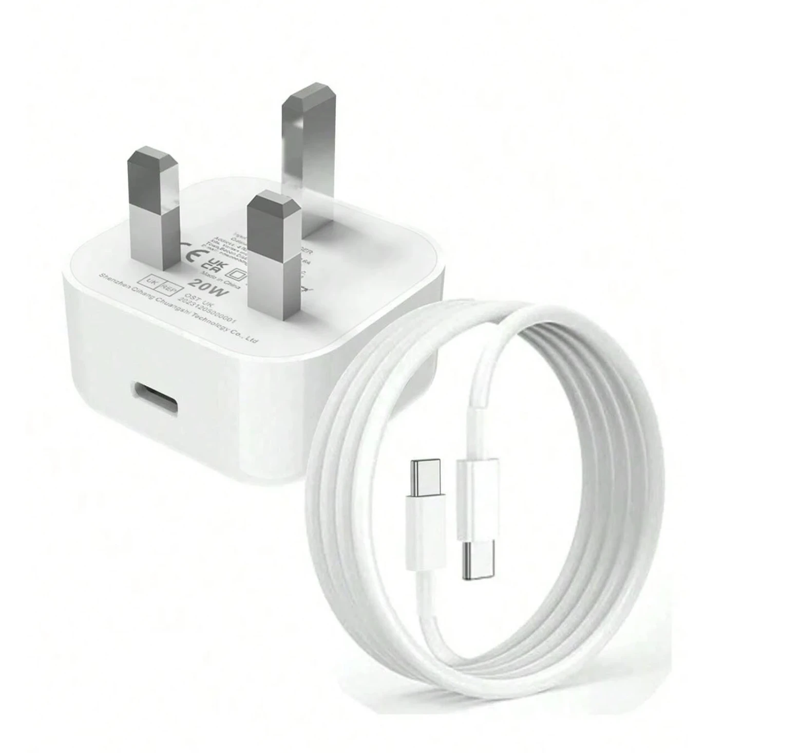 طقم شاحن سريع 20 واط: محول طاقة شحن سريع 20 واط بقابس بريطاني + كبل شحن سريع USB-C إلى USB-C بطول 3.3 قدم/100 سم، متوافق مع 15 برو ماكس/15 برو/15 بلس/15، 16، S25/S24/S23/S22/S21