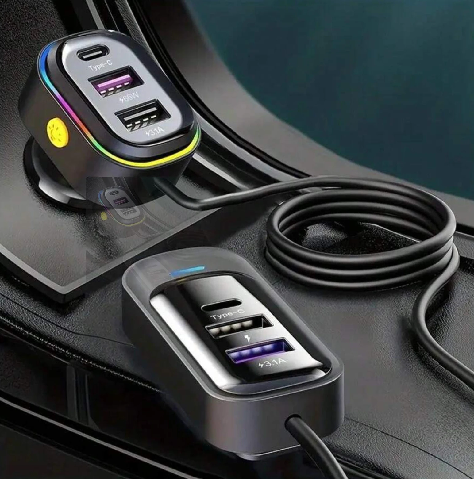 شاحن سيارة سريع 81 واط ، 6 منافذ للشحن المتزامن من الأمام والخلف ، 1 منفذ نوع C ، 2 منفذ USB ، كبل توسيع 59.06 بوصة ، مشبك مضاد للانزلاق ، شاحن سيارة متعدد المنافذ شحن سريع ، يدعم واجهة Android نوع C ، طول الكبل 1.5 متر ، هدية عيد الميلاد/ لاكسسوارات السيارة