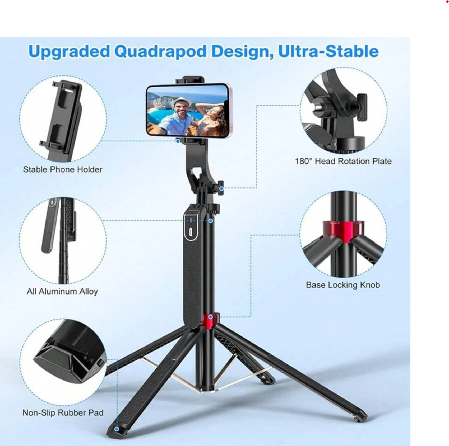 حامل ثلاثي القوائم للهاتف قابل للتمديد، عصا سيلفي مع حامل ثلاثي القوائم للبث المباشر متعدد الأرجل مع مشبك هاتف متكامل، محمول، معين لتدريب الجولف - متوافق مع هواتف أيفون وأندرويد، حامل هاتف ثلاثي القوائم قابل للشحن مع جهاز التحكم عن بعد للهاتف وكاميرا جوبرو للمهام الصيفية والسفر والأنشطة الخارجية والبث المباشر