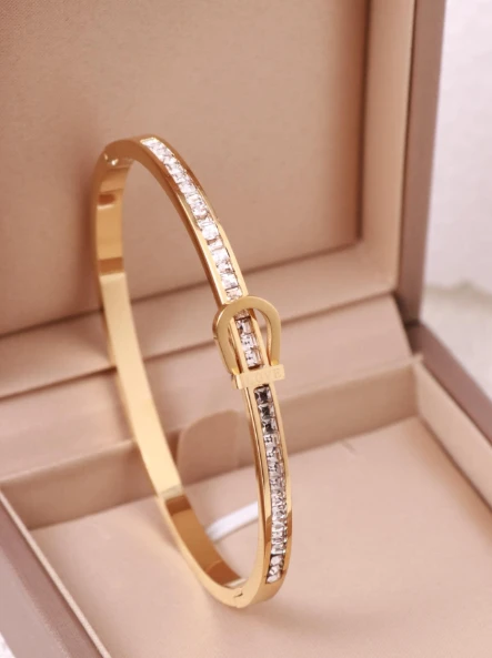 إسورة موضة فولاذ غير قابل للصدأ بديكور حجر الراين للنساء الزخرفة اليومية قطعة واحدةرمضان