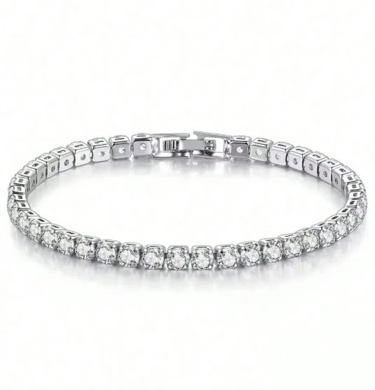 سوار مطلي بالفضة الإسترليني عيار 925 مرصع بالزركونيا على شكل كرة التنس للنساء، مجوهرات بسيطة للخطوبة والزواج، 4 مم، 16-23 سم