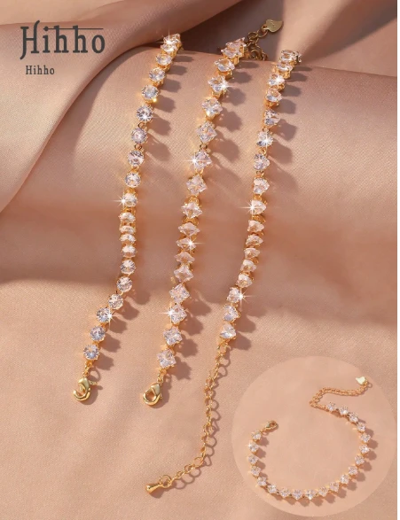 Hihho سوار فاخر من الزركونيا بتصميم هندسي، مجوهرات أنيقة وأنيقة للنساء