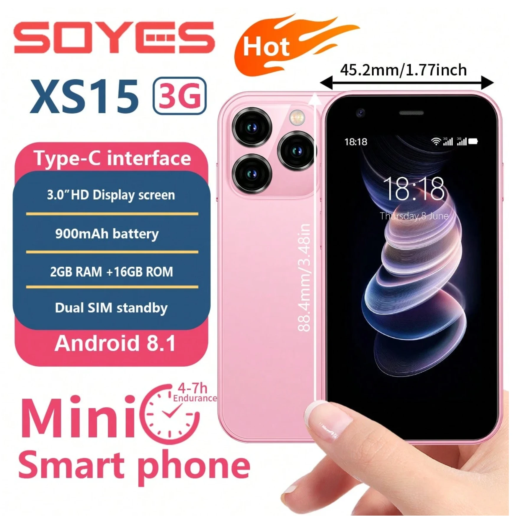 هاتف ذكي SOYES XS15 3G صغير الحجم 3.0 إنش شاشة أندرويد 8.1 ، 2 جيجا بايت رام ، 16 جيجا بايت رام، ثنائي شريحة سيم، متوافق مع متجر بلاي ،هاتف 3G للفتيات حجم صغير