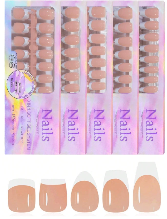 135 قطعة من الأظافر الاصطناعية الفرنسية الأسلوب بأشكال البالية/المدببة/المربعة/الكاملة التغطية للضغط، مناسبة للنساء أو الفتيات لتصميم الأظافر DIY في المنزل، مستلزمات الأظافر