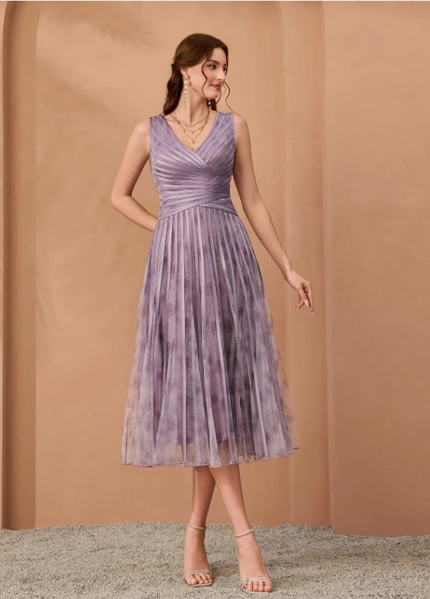 فستان نسائي أنيق وراقٍ يتميز برقبة دائرية وتصميم بدون أكمام