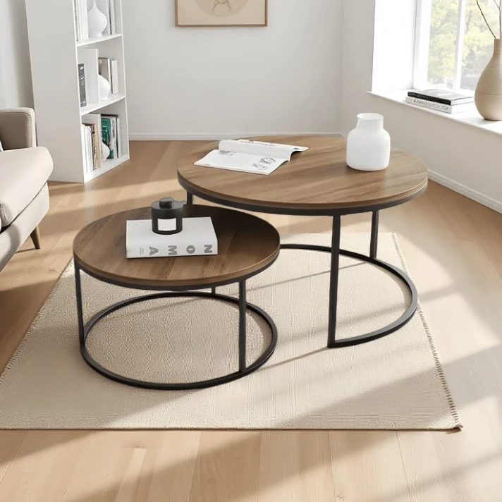 طقم طاولات قهوة عصرية (2 قطعة) - ماربل مضاد للماء مع إطار معدني