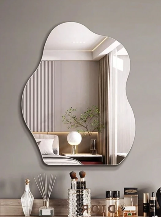 مرآة حائط بشكل سحابة من الأكريليك، مرآة لاصقة للحمام والمكياج