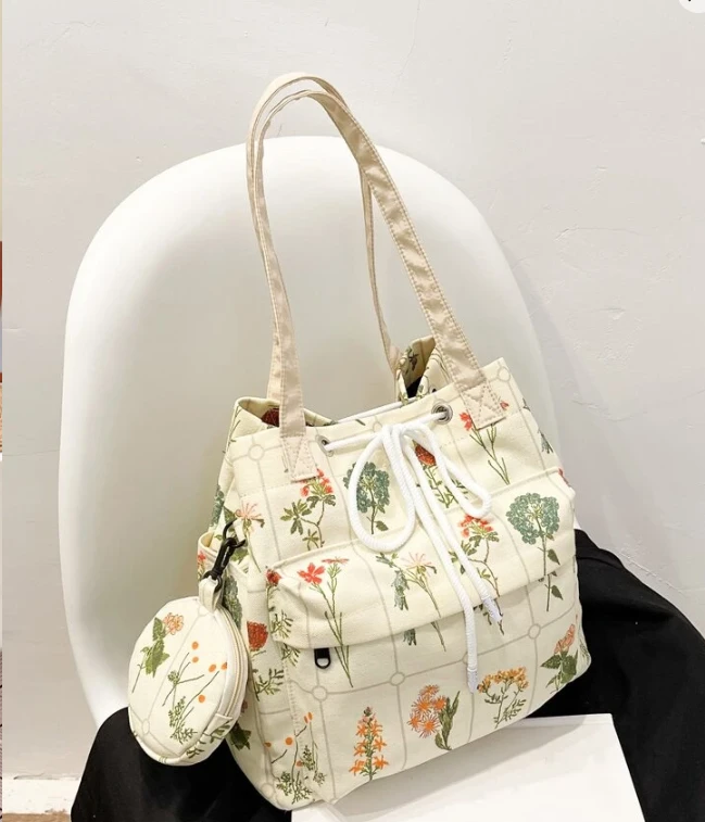 حقيبة كتف خفيفة الوزن بتصميم كاجوال مزين برسومات الأزهار الأنيقة