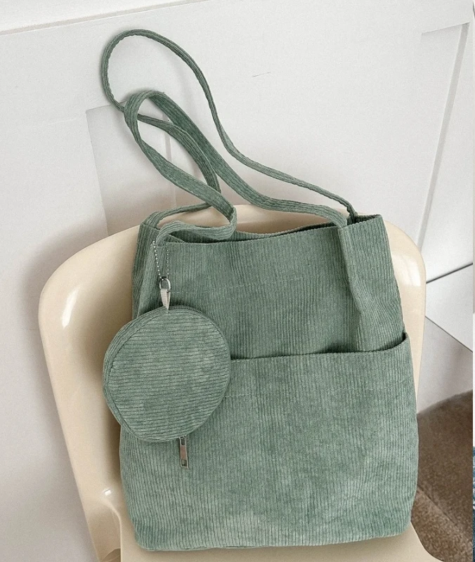 حقيبة كتف كانفاس مخططة أنيقة للنساء، كبيرة السعة وعملية للاستخدام اليومي.