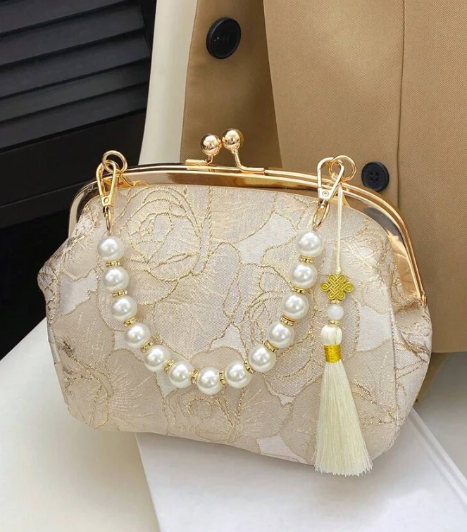 حقيبة يد أنيقة للنساء مطرزة بالخرز والزّهـور مع شراشيب تضفي لمسة فاخرة وجذابة