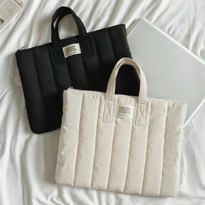 حقيبة لابتوب محمول بنمط زهور الأقحوان الأنيق، بتصميم قطعة واحدة يجمع بين البساطة والجمال.