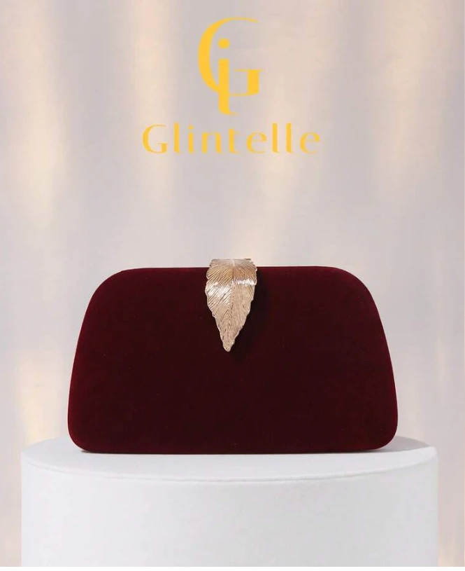 حقيبة مساء أنيقة للنساء بتصميم صندوقي من المخمل البرغندي