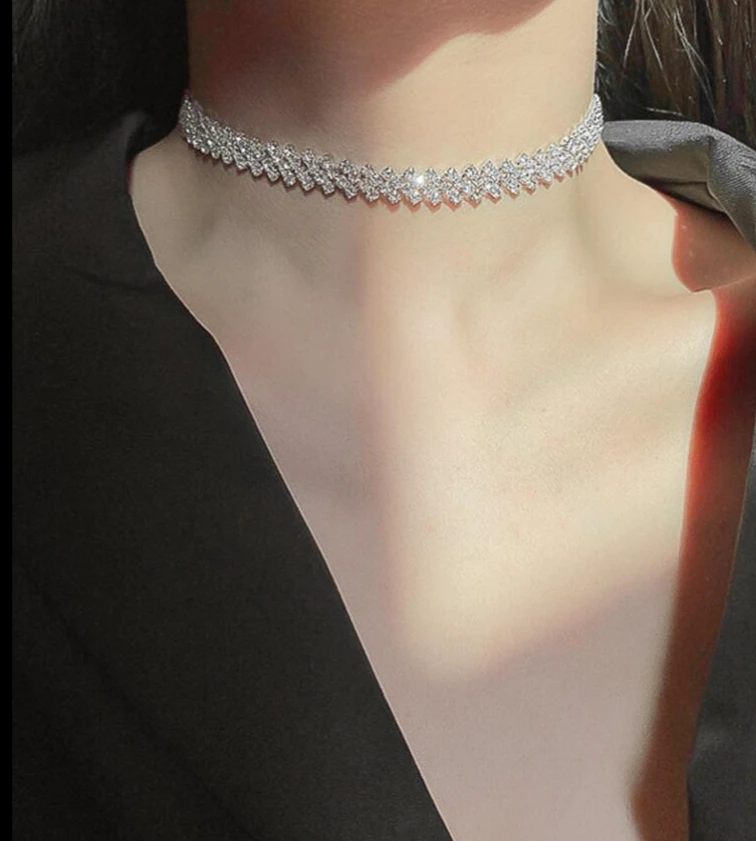قلادة عصرية مزينة بحجر الراين المتلألئ بتصميم أنيق يضفي لمسة فخامة ورقي على الإطلالة