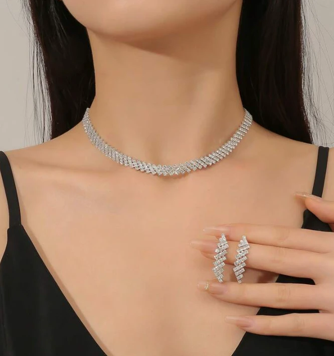 مجموعة مجوهرات أنيقة تتكون من قلادة وأقراط مزينة بأحجار الراينستون اللامعة (3 قطع)