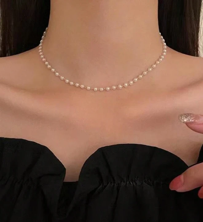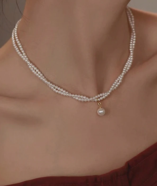 قلادة مزدوجة الطبقة مصنوعة من الخرز الاصطناعي بطراز فرنسي أنيق